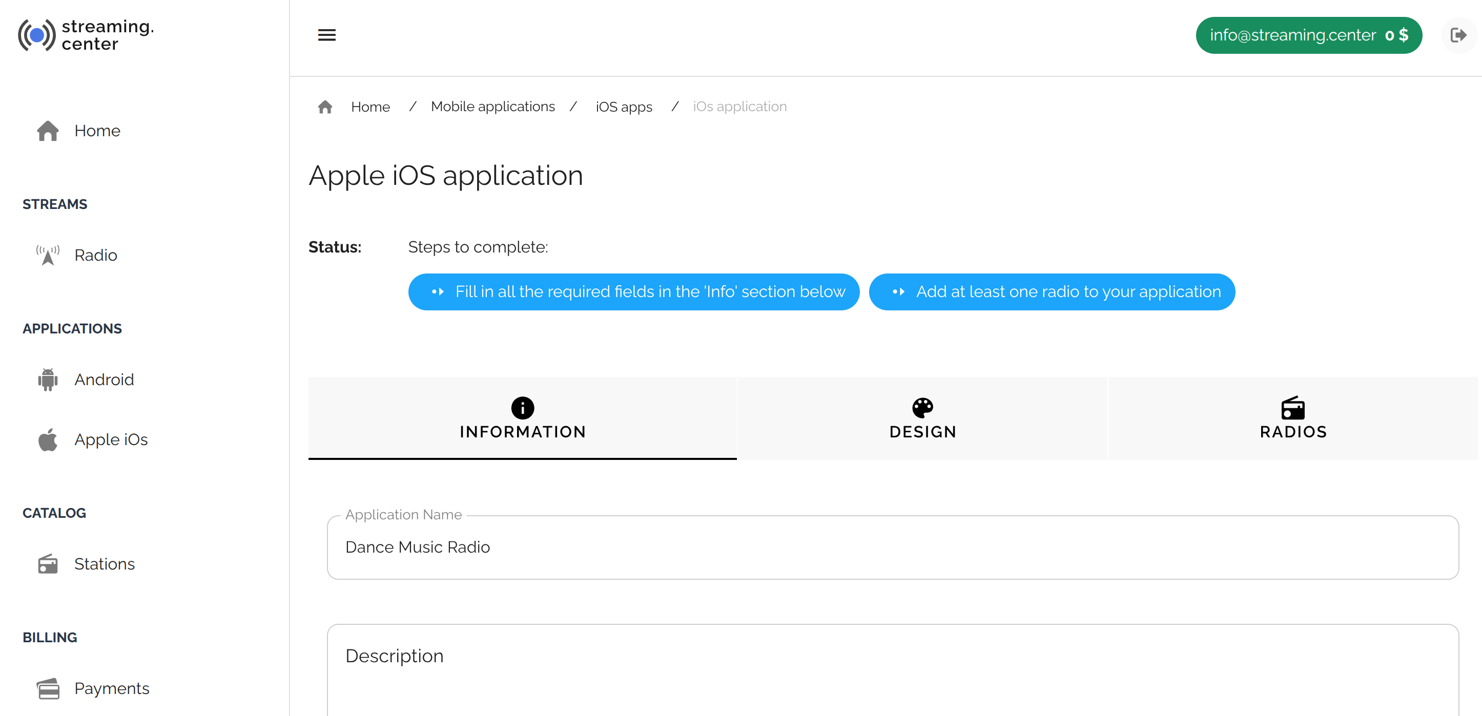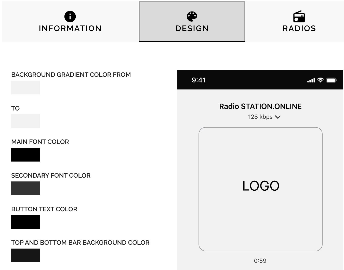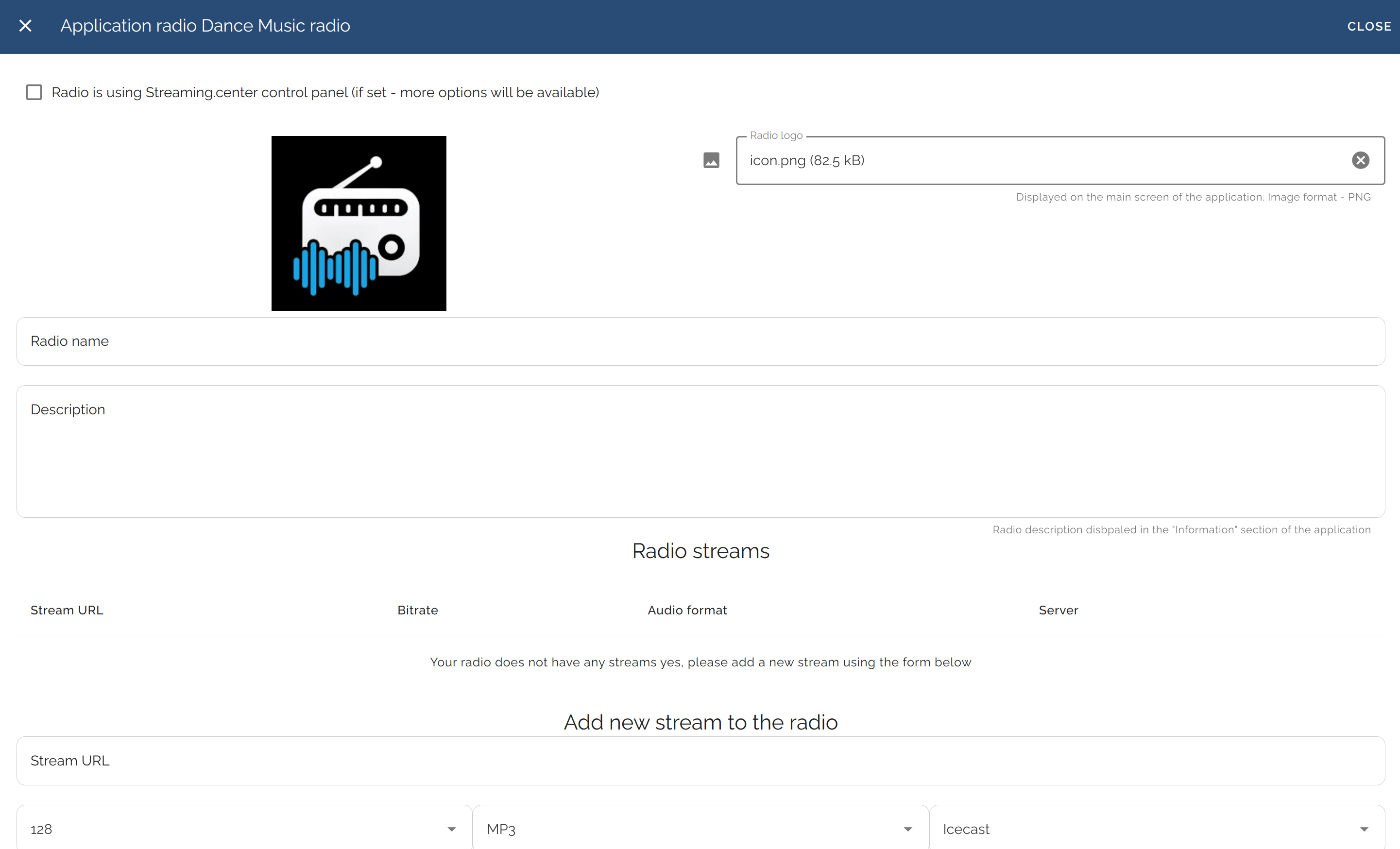 - Minimal technical support, with the basic version requiring you to simply fill out the app creation form (specify the name, description, logos, and radio streams).