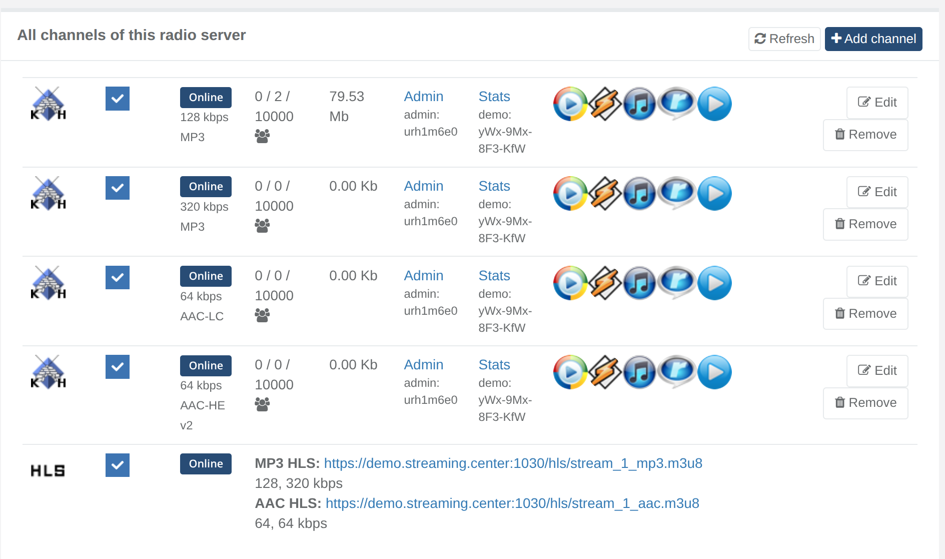 - MP3 and AAC streams are kept separate: You’ll get distinct HLS URLs for MP3 and AAC - never mixed.