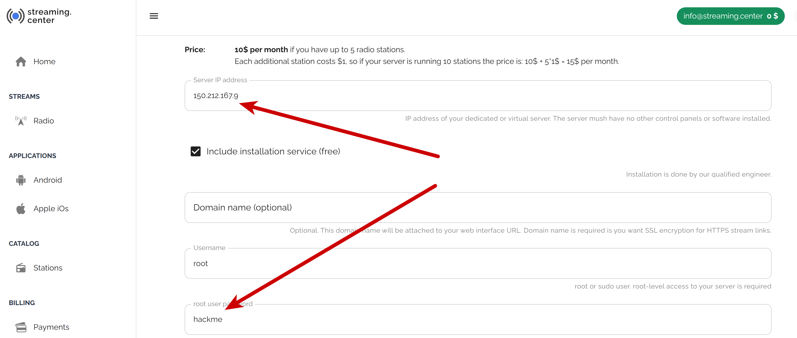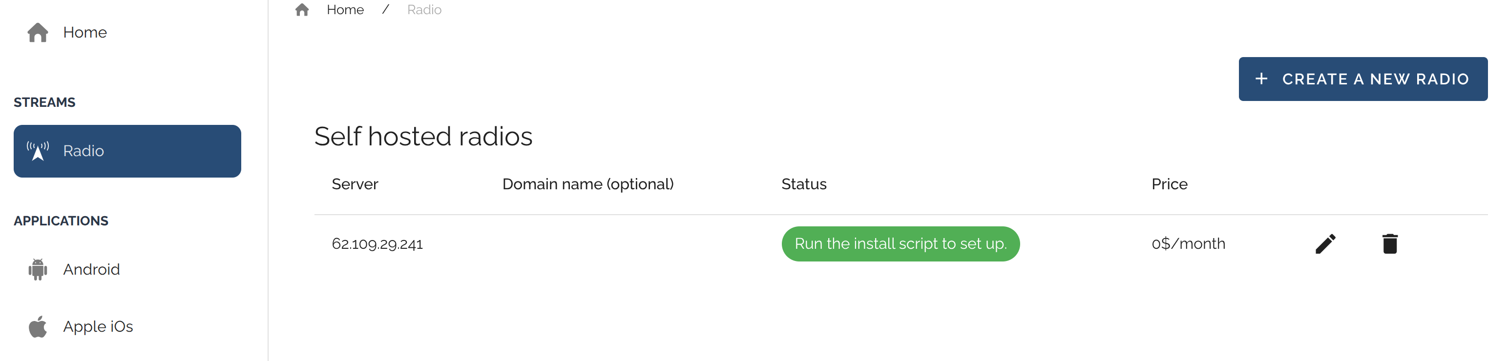 We don’t use license keys tied to your server. To manage a self‑hosted radio with our system, simply add the server to your account. Once you have a running server, its public IP address, and root access (SSH key or password):